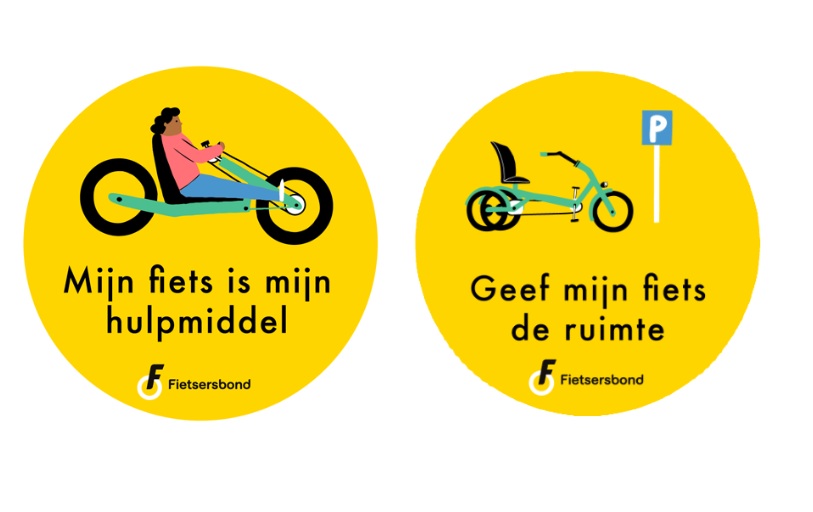 De Fietsersbond heeft samen met vrijwilligers van de community Iedereen Mobiel stickers voor je fiets ontwikkeld om duidelijk te maken dat je aangepaste fiets jouw hulpmiddel is. De nieuwe stickers met de teksten ‘Mijn fiets is mijn hulpmiddel’ en ‘Geef mijn fiets de ruimte’ maken de fiets herkenbaar voor andere weggebruikers en parkeerbeheerders en verhogen begrip en respect. Daarmee helpen de stickers om veilig en zelfstandig te kunnen fietsen en tegelijk het gesprek over toegankelijke fietsen te stimuleren.