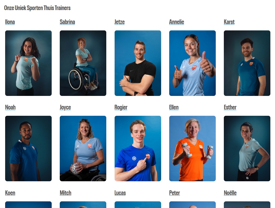 Uniek Sporten Thuis biedt een breed aanbod aan online work-outs voor mensen met een lichamelijke beperking of aandoening. Deze work-outs zijn ontwikkeld en opgenomen in samenwerking met onder andere de Nederlandse Volleybalbond en het Nederlands Handbal Verbond. Het uitgangspunt: bewegen zo toegankelijk, veilig en laagdrempelig mogelijk maken, ongeacht iemands niveau of beperking.
